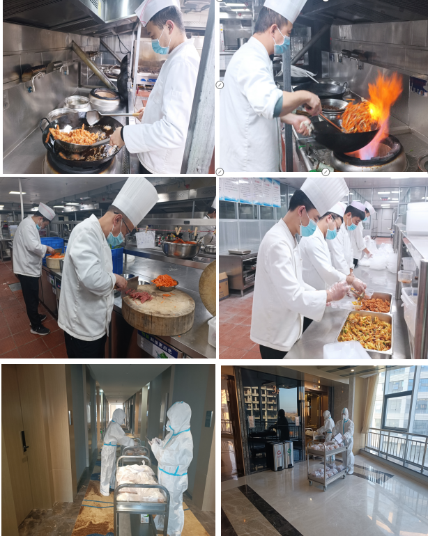 “疫情防控工作專班及高速卡口工作防疫逆行者們不顧危險奔赴一線,我們當仁不讓為他們保障后勤!”每一位職工服從公司統(tǒng)一指揮,堅守自己的工作崗位。每天凌晨3點,廚房里就開始熱鬧起來了,切菜、掂勺、出鍋、裝盒……廚師們戴著口罩、帽子、手套,“全副武裝”地站在操作臺前,有條不紊地開始為“最美逆行者”每日三餐忙碌準備,保障防疫逆行者們在酒店期間能安心食宿。